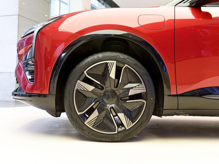 车身侧面,车身尺寸方面,新车长宽高分别为4725mm/1925mm/1676mm,轴距为2780mm。车窗的下边沿与腰线一起,在后车门处形成一个上挑,让车身侧面的线条变得动感。轮圈的尺寸不算小,并且使用了低风阻的设计,车辆左前翼子板有一个充电口的设计,新车车门采用了隐藏式门把手设计,车门开启包括手机蓝牙和NFC。