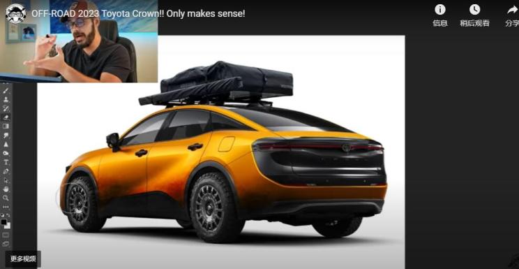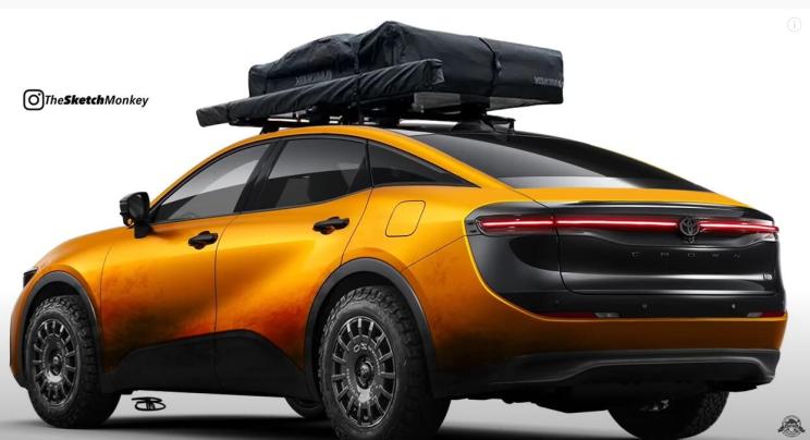 TheSketchMonkey通过PS工具以皇冠CROSS OVER跨界式车型为基础进行了升级,并介绍了自己的理念。从最终的效果来看,新车采用了新的黄色涂装,换用了O.Z新的轮圈和偏向越野的轮胎,配上黑色的外后视镜和车顶的行李架,看上去非常的硬核。底部保险杠的设计也进行了微调,整体造型风格还是非常不错的。
