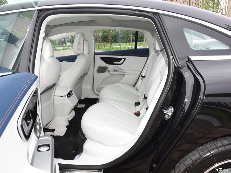 车侧可以看到整车的流线造型,这为降低风阻做出了贡献,这对于电动车来说尤为重要。尾部车灯依然是EQ家族熟悉的造型,贯穿式的尾灯极具辨识度,同时尾部还新增了一个小鸭尾的造型。车身尺寸方面,新车长宽高分别为4969/1906/1509mm,轴距为3120mm。车长比北京奔驰E级稍短,但轴距更长。