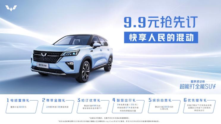 [本站 新车官图] 8月2日,上汽通用五菱官方发布了旗下紧凑型SUV――五菱星辰混动版官图。同时,即日起至上市前,用户可通过LING Club App/小程序等官方指定线上渠道支付9.9元下订,即可尊享六重购车礼,专属宠粉权益。