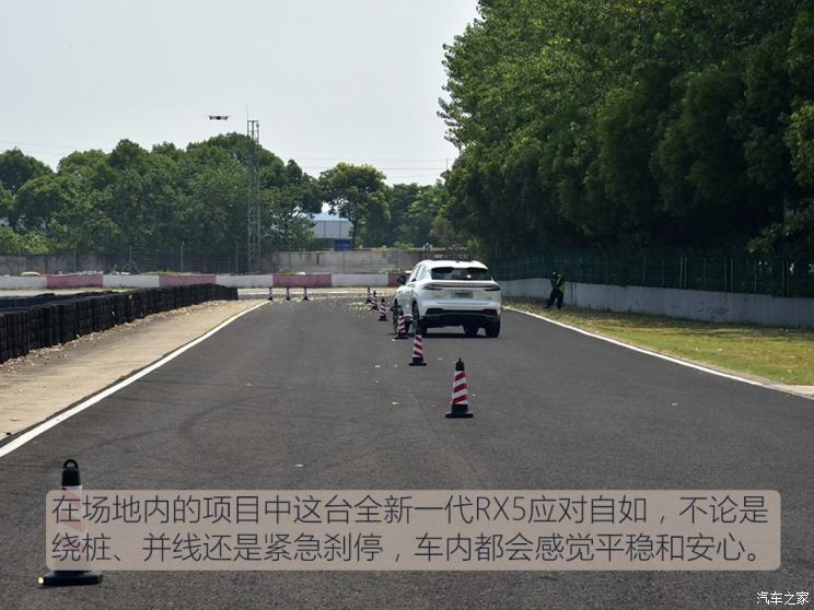 这次的场地试驾主要体验的是全新一代RX5性能方面的表现,试驾的当天上海温度接近40℃,对于燃油车来说这样的高温也是非常大的考验。在动力上的体验它给了我非常轻快的感觉,油门的响应速度要比此前RX5产品更快,完全没有动力衔接中断的感受。对于双离合变速箱在场地内我还特意模拟了减速降挡时的工况,以这台试驾车的表现来看平顺性没有影响,也听不到什么变速箱工作的声音。