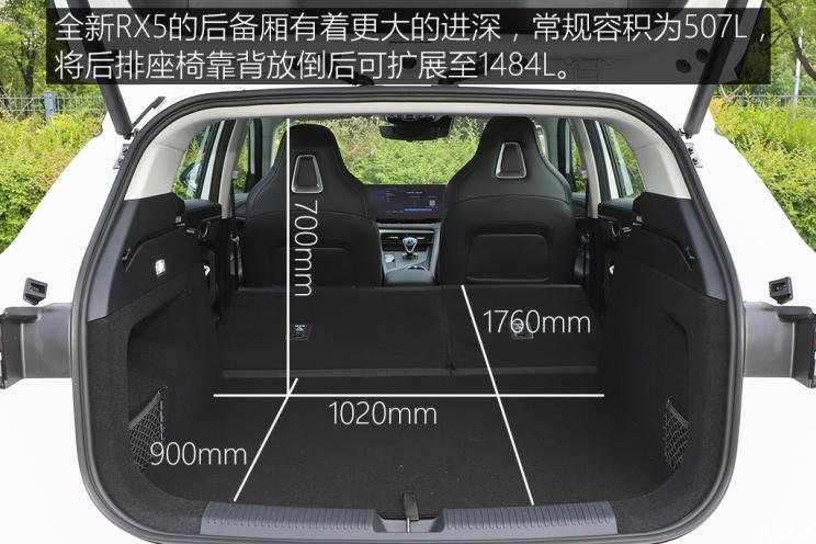 全新RX5的后排空间还是蛮充裕的,而且这损失的部分是给到了后备厢,所以全新荣威RX5的常规后备厢容积为507L,较2021款车型增加了77L。