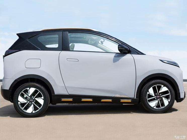 来到侧面,该车采用的是双色车身设计,车门把手为隐藏式,在侧裙上还增加了不同颜色的装饰,并且将会配备16英寸的轮圈。车尾方面,新车尾灯与前大灯形成呼应,后包围还营造出了排气装饰,整体造型放在这个级别中算是比较独特的。
