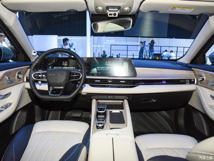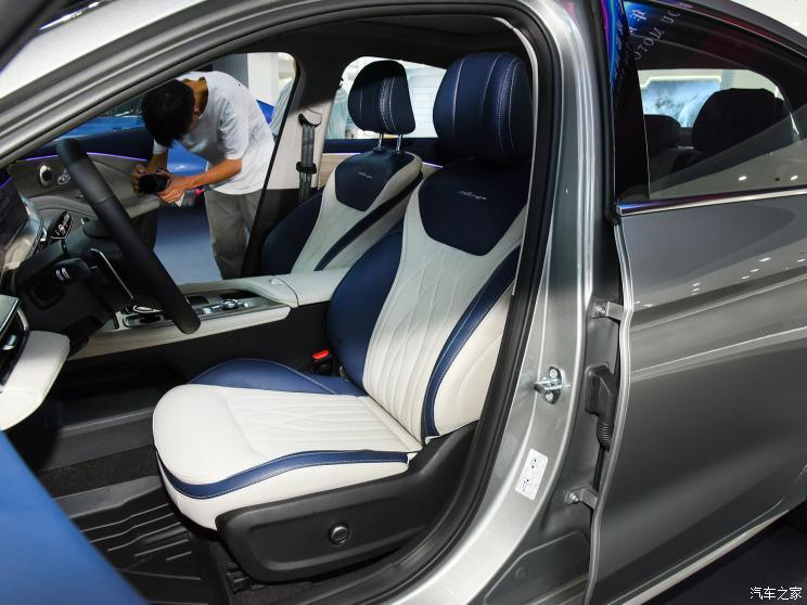 进入车内,新车采用了一套简洁的内饰设计风格,以皮革和木纹装饰板进行点缀,并配备有双12.3英寸仪表盘,且支持无线手机映射功能(无线CarPlay+华为Hicar)。此外,新车还将提供三种内饰配色:浩瀚蓝、碧波绿、沧海灰。同时可以看到,新车的A柱上有摄像头,会配备疲劳监测、人脸识别等功能。