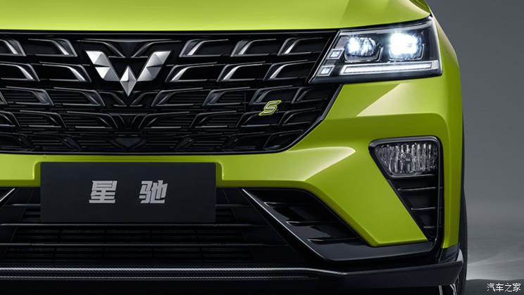 外观方面,新车沿用了五菱银标“翼动美学”的设计思路,飞翼式镀铬格栅采用矩阵式排布设计,整体更加精致。同时,官方还在该车格栅边缘处加入S标识,搭配下方三段式进气口以及多边形大灯组,运动感得到很好地提升。
