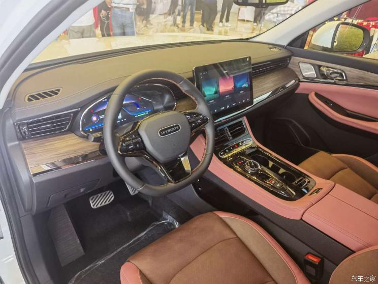 车辆内饰设计并不如如今众多新势力那般新潮,不过配置表现还是比较主流的,采用了一块12.3英寸的全液晶仪表、中控大屏尺寸为12.8英寸。车辆保留了不少传统物理按键,同时采用了换挡旋钮,以此来提升车内的科技感。另外值得一提的是,新车座椅采用真皮和翻毛皮拼接打造,这在同价位车型中不算多见,预计舒适性表现不错。