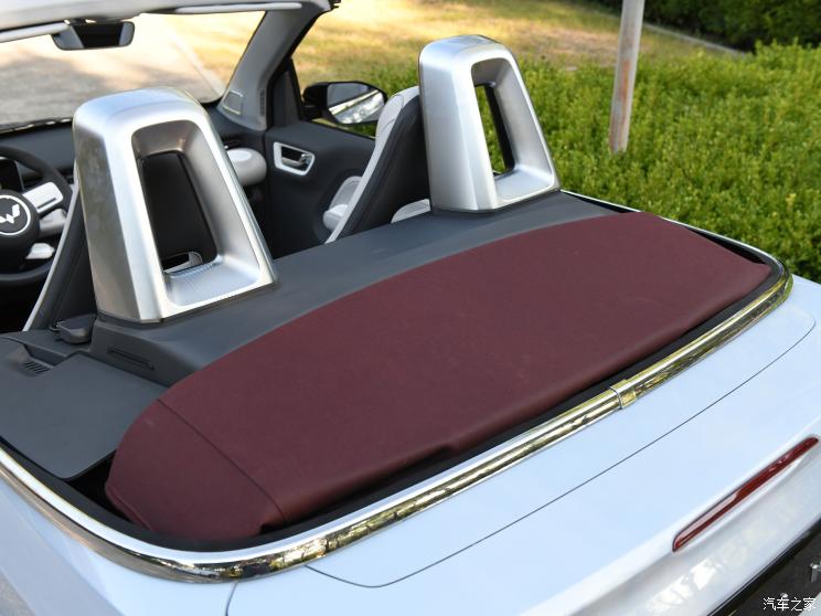 外观方面,宏光MINIEV敞篷版是基于宏光MINIEV打造的敞篷版车型,其采用软顶敞篷的设计,新车篷布有红色和黑色的设计,篷布采用半自动开关篷结构,其使用了无框式车门,车辆后排还增加了防滚架。尺寸方面,其长宽高分别为3059/1521/1614mm,轴距为2010mm。