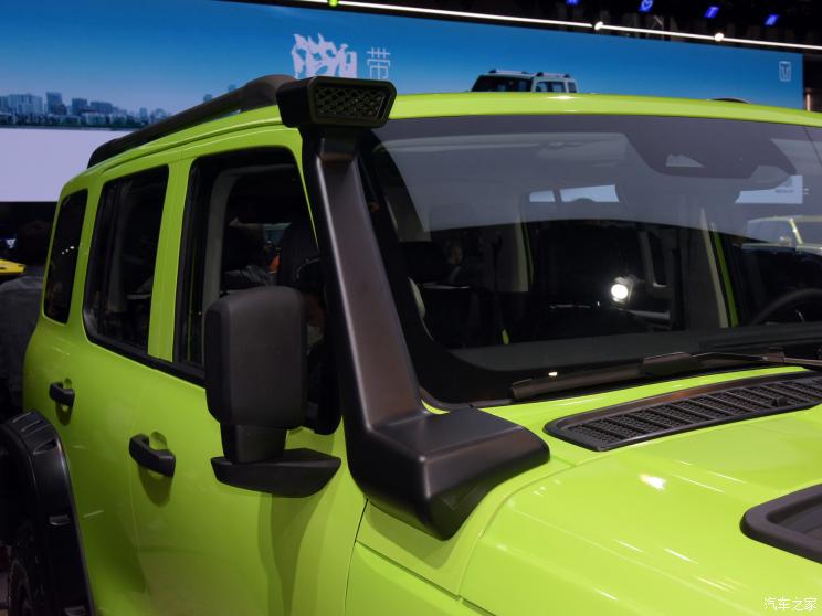 坦克300游侠换装了金属冲压成型前后杠和金属侧杠,同时,换装黑色塑料越野专用轮眉,保证越野过程中,不会被刮花。保险杠上还有12000磅WARN无线绞盘,可以在必要时实现自救,同时,尾部还有一个拖车钩,具备2.5吨牵引资质,可以满足户外露营的拖车需求。在前风挡旁边,还有一个涉水喉,可以保证坦克300游侠通过更深的涉水区域,新车涉水深度900mm,前发动机盖还增加了专属的装饰。