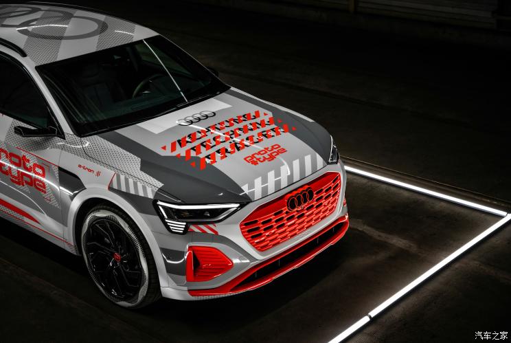 车身侧面,新车整体造型与现款的e-tron车型相比变化不大,较为平整的车身面板搭配平直的车身腰线,配合前后宽厚的轮眉设计和全新设计的轮圈,让新车更加凸显电动化的属性。车尾部,新车依旧采用贯穿式尾灯组,两侧尾灯主体内部的光源在点亮后也极具辨识度,新车后包围还配备了尾部扩散器,进一步优化空气动力学特性。