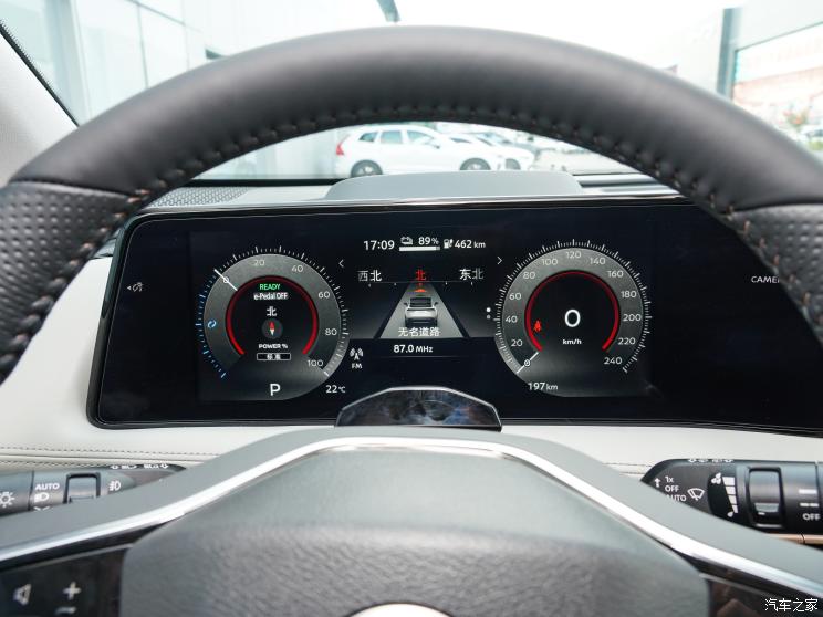 方向盘上有个小蓝圈,它用来控制日产Pro PILOT系统的启动和关闭,按下它之后,车辆就可以启动自适应巡航以及车道保持这样的驾驶辅助功能。在中控台左侧,可以看到大灯高度可调、自动泊车、抬头显示、自动驻车、充电控制以及后备厢开关等功能按键。