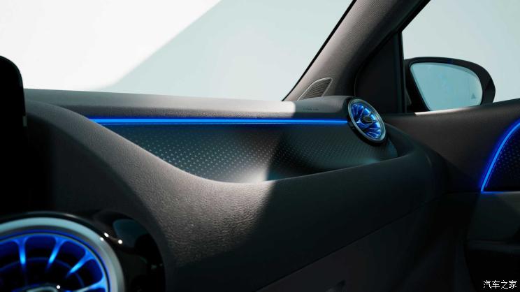 内饰方面基本保持不变,配备MBUX系统以及10.25英寸中控屏,仪表则可以选择7英寸/10.25英寸。此外新车标配Nappa真皮方向盘,以提升质感。此外,高配车型还拥有新的内饰颜色和星型装饰。