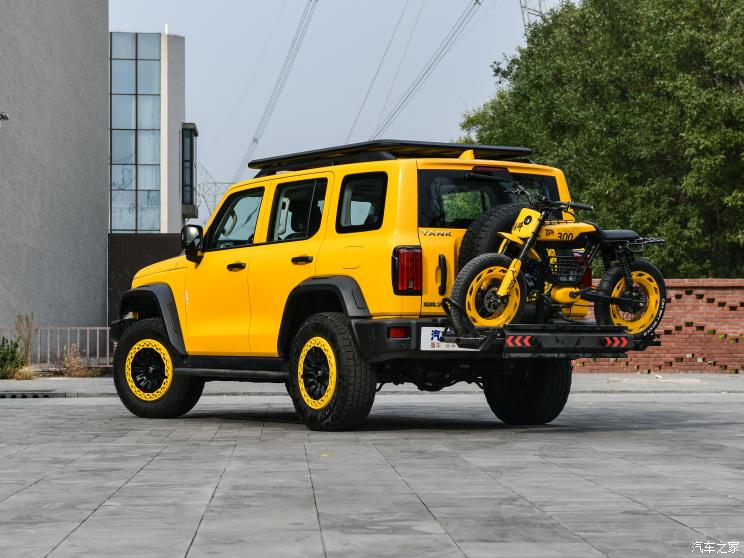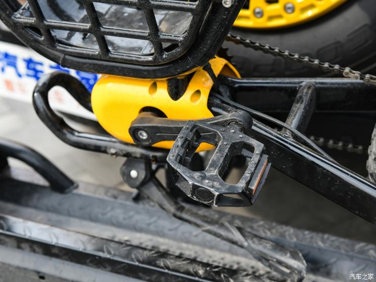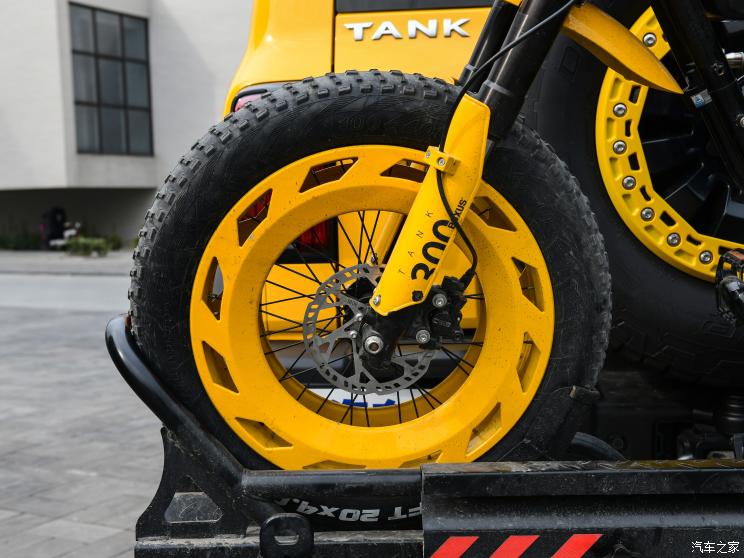 新车整体采用了已经上市的坦克300边境限定版涂装配色,黄色+黑色的涂装让这款车看上去十分亮眼。同时,根据官方介绍,这款车长/高分别为1717/978mm(座高760mm),轴距为1110mm。整体车身材质采用高碳钢,并配备前后液压碟刹。