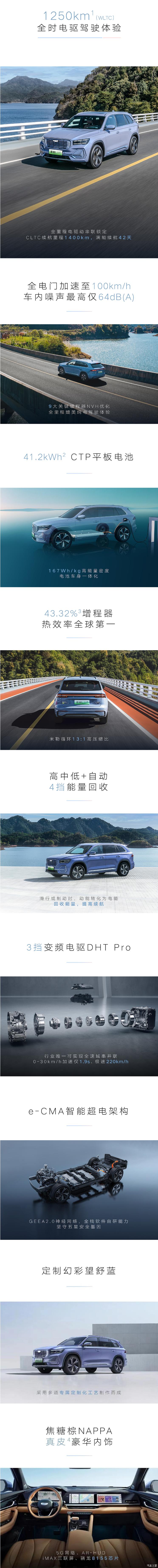 据官方表示,星越L Hi・P相比传统PHEV车型,其可锁定发动机作为增程器为电池发电,最大化电驱动的效率;相比纯电动车,星越L Hi・P可以同时享受加油的便利,完全消除了里程焦虑;相比增程电动车,星越L Hi・P拥有并联电混系统和三挡变频电驱DHT Pro,能耗更低。值得一提的是,星越L Hi・P标配直流快充,可实现最高85kW充电功率,让电池电量由30%充电到80%仅需27分钟。