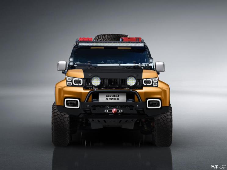 车辆四周配备竞技前杠、竞技后杠以及侧杠,在遇到危险时可以有效缓解撞击力。同时,该车还加装了车身马踏和车顶铝合金行李架,并且把尾门荷叶等相关细节都进行了加强,保证了车辆的物资装载能力和极限环境下的承载能力。考虑到夜间穿越和极端天气的场景,BJ40可可西里版在车头增加了一组射灯,A柱加装了双4粒射灯,任何情况下都能保证足够的能见度。