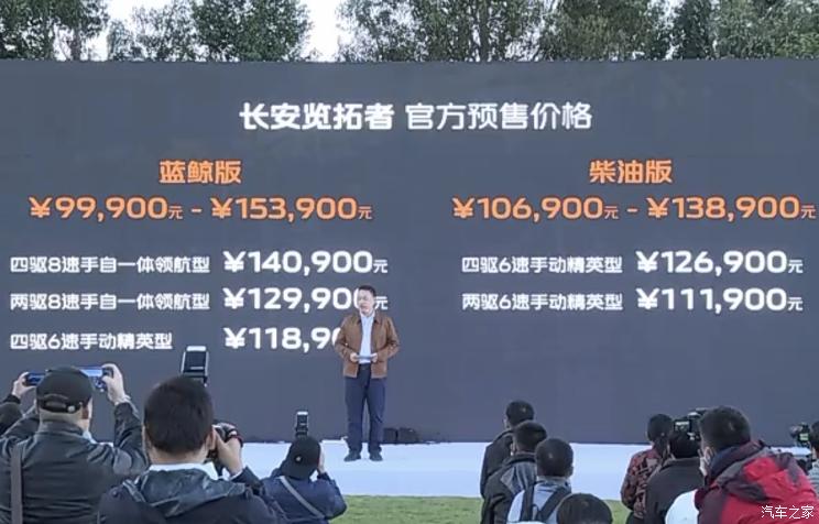 [本站 资讯]11月10日,长安览拓者正式开启预售,新车预售价区间为9.99-15.39万元。其中蓝鲸版预售价区间为9.99-15.39万元,柴油版预售价区间为10.69-13.89万元。新车是长安汽车旗下全新皮卡,外观采用山河美学设计语言、内饰配备双联屏设计、同时动力上也将搭载蓝鲸新一代2.0T动力。