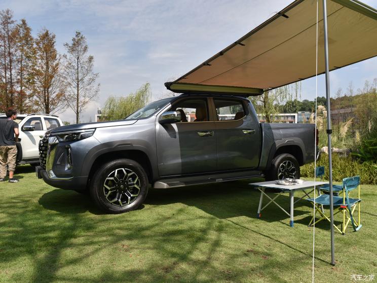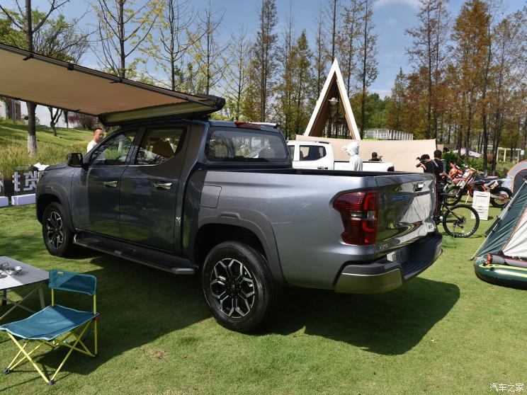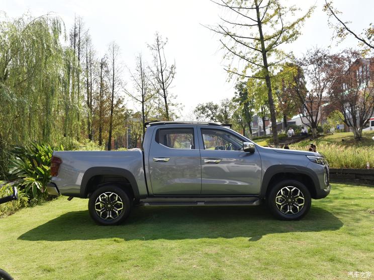 动力方面,新车搭载蓝鲸新一代2.0T涡轮增压四缸汽油发动机,最大功率为233马力(171千瓦),最大扭矩为390牛・米,传动系统匹配采埃孚的8速自动变速箱,并有四驱系统可选,支持5种驾驶模式。此外,新车还采用了前双横臂式、后五连杆式的悬架结构,增强了皮卡车型的驾乘体验。