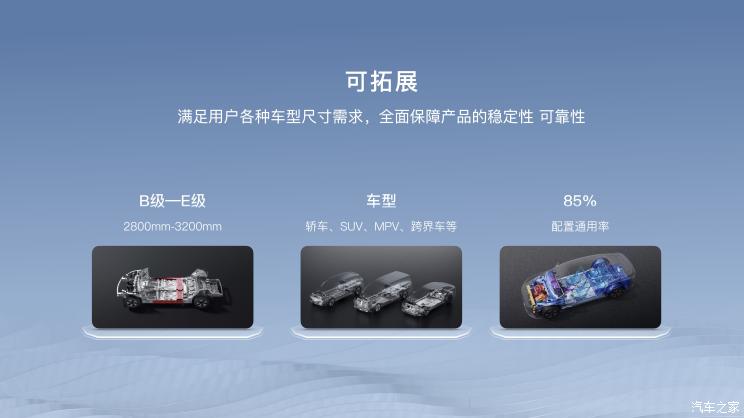 据官方表示,岚图ESSA架构具备高拓展性,保障每款车型具有一致的高性能和稳定性,并为新技术预留充足的拓展空间。支持2800mm-3200mm轴距车型开发,支持轿车、SUV、MPV以及跨界车在内的多款车型,而官方也在研发这四类车型产品。