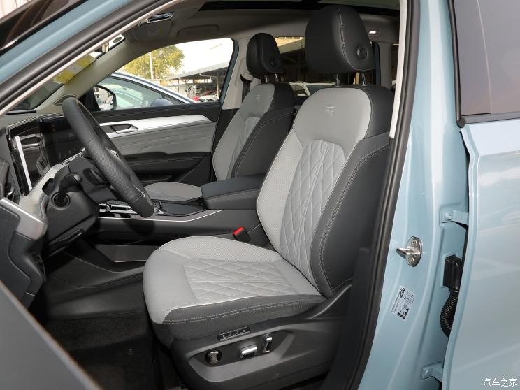 外观方面,新车采用了大众家族式设计语言,整车的精致感有所提升。细节来看,新车头灯组采用了黑底设计,搭配上颇具层次感的格栅线条,进一步提升了该车的辨识度。此外,新车前包围处为贯穿式设计,甚至让我们看到了一些大众ID.家族车型的影子。