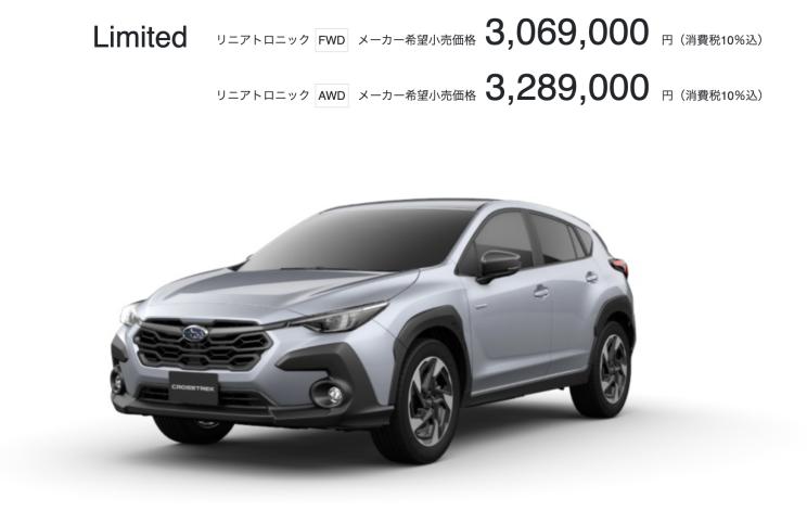 [本站 资讯] 日前,根据外媒报道,斯巴鲁Crosstrek在日本本土上市,新车有Touring和Limited两种版本,作为斯巴鲁XV的换代车型,它可选择两驱以及四驱版,指导价格266.2-328.9万日元,约折合13.98-17.27万人民币。