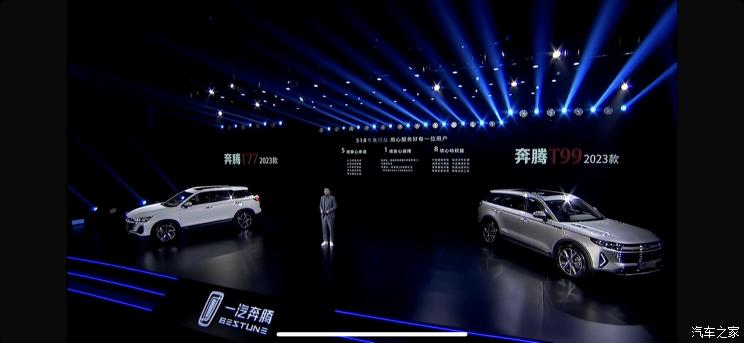 [本站 新车上市]12月15日,一汽奔腾紧凑型SUV新款奔腾T77和中大型SUV新款奔腾T99正式上市,其中新款奔腾T77共计推出2款车型,价格区间为11.48-12.38万元;新款奔腾T99共计推出6款车型,价格区间为13.49-18.69万元。两款车型均在老款车型之上进行了改款,新车最大的变化莫过于启用了全新的产品标识,同时前脸也有较大的变化。新款奔腾T77和T99提供整车终身质保、新用户5年免费机油保养、30日免费退换政策。