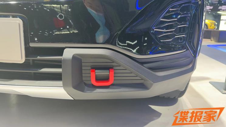 外观方面,新车采用了大尺寸的前格栅设计,并进行了黑化,例如前LOGO,灯组、中网等部位,同时新车在前包围两侧装备了红色的拖车钩,以展现新车独特的身份。