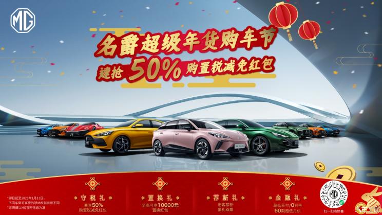 [本站 资讯] 1月3日,我们从名爵官方了解到,即日起至2023年1月31日,名爵推出超级年货购车节活动。此次活动中,名爵推出包括守免税礼、置换礼、荐新礼、金融礼等。同时,消费者购买名爵车型可享50%购置税红包、至高10000元置换红包等,不同车型可享不同活动权益,具体如下: