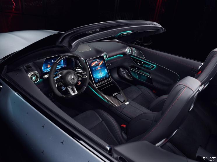 内饰方面,新车延续了AMG SL 63的整体设计,并在车内加入了一些装饰和整体风格呼应。配置方面,这款车还采用了柏林之声的音响,氛围灯、MBUX车机系统、驾驶辅助套装以及抬头显示等科技配置。同时像AMG TRACK PACE等配置也没有缺席。