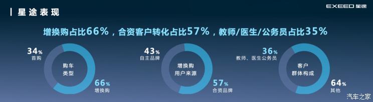 2022年,星途全年1-12月累计销量51142辆,同比增长37.6%,从市场反馈来看,星途单车平均售价达到15.7万元。在星途的用户构成里,增换购占比66%,合资用户转化占比57%,教师/医生/公务员占比超过35%,这也从另一个侧面展现出星途的品牌溢价能力以及产品优势。2023年,星途还将卯足劲全油门出海,向欧盟市场发起大规模进军,海外业务进一步拓展至全球20个以上的国家和地区。