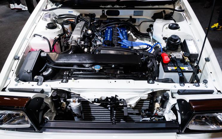 Sprinter Treno车身风格的H2概念车则更为有趣,除了经典的翻灯设计外,打开发动机舱盖,你会看到一台真正的4A-GEU发动机,其喷油器、燃油管和火花塞都经过特殊改进,以满足氢燃料系统的规格。两个来自丰田Mirai的储氢罐被放置在车尾部,即便如此,经过改造的AE86依旧保持着不足1吨的车重。