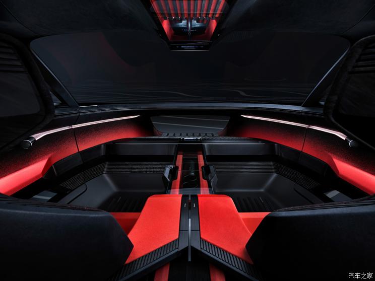 新车内饰采用红+黑的配色,凸显科技质感。在车内氛围营造上,该车和其他三款概念车一样,都很注重打造更自由、更自然的生活空间。首先在开门方式上,新车采用对开门的方式,车内景象一览无余。由于该车拥有L4级自动驾驶能力,所以方向盘和仪表台可以折叠隐藏在前排,当车主需要时再展开。