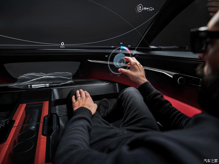 车辆在车顶有一个正对中控台且尺寸相当的控制台,四个AR头戴式显示设备置于此处,这也是这款概念车车内的一大亮点,通过创新AR头显,将虚拟和现实结合,每位驾驶员和乘客均可单独使用。比如这项技术可将地图导航、音乐娱乐节目投射到乘客或者驾驶员的AR头显中,乘客可以通过手势、头部动作甚至是眼镜来搜索地址、搜索歌曲,而且无论乘客采用何种姿势,AR头显均可捕捉。因此在概念车当中不需要屏幕或者物理按键,客户只需要在投射现实中的物体,虚拟操作屏幕就会出现在头显中。