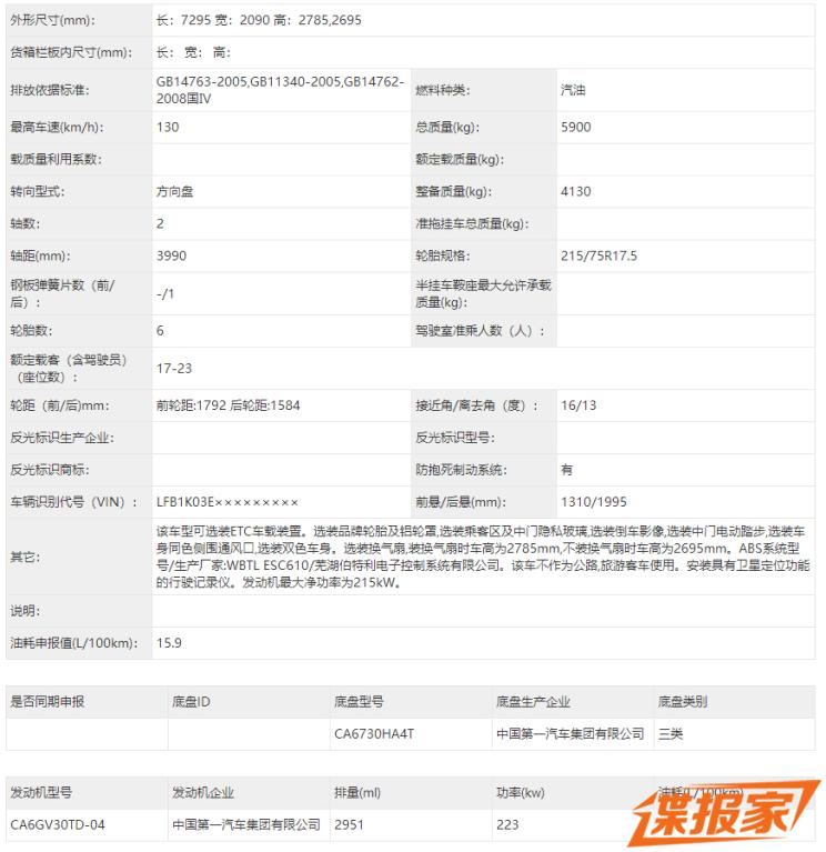 [本站 国内谍照] 日前,我们从工信部获取到了一汽红旗全新中巴车型的申报信息,该车或与丰田柯斯达(国内俗称为考斯特)、宇通T7等为同级车型。根据网络曝光的信息,该车内部代号为V506,有望在今年10月发布,未来或被定名为“红旗QM7”。