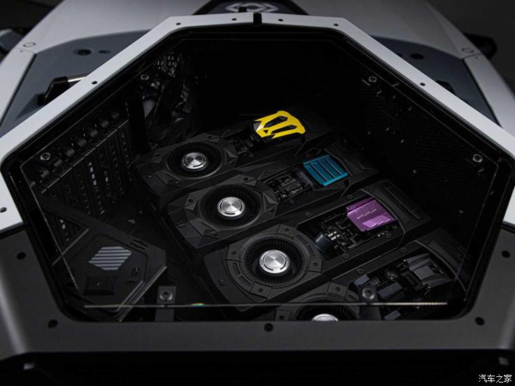 新车最有意思的地方是的后打动机舱盖上的小箱子,在箱子里面安装有类似显卡一样的东西,以及五颜六色的元素,整体看上去有点像台式机的机箱。整车的细节搭配还展现出了一些未来主义色彩。