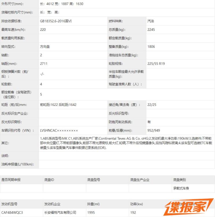 车尾部分,新车采用了贯穿式的尾灯组,并配备了透明灯壳与黑色灯底,其造型更具辨识度,新车后包围还采用了银色的贯穿式装饰条点缀,进一步提升车尾的视觉宽度。车身尺寸方面,新车长宽高分别为4612/1887/1630mm,轴距为2711mm。