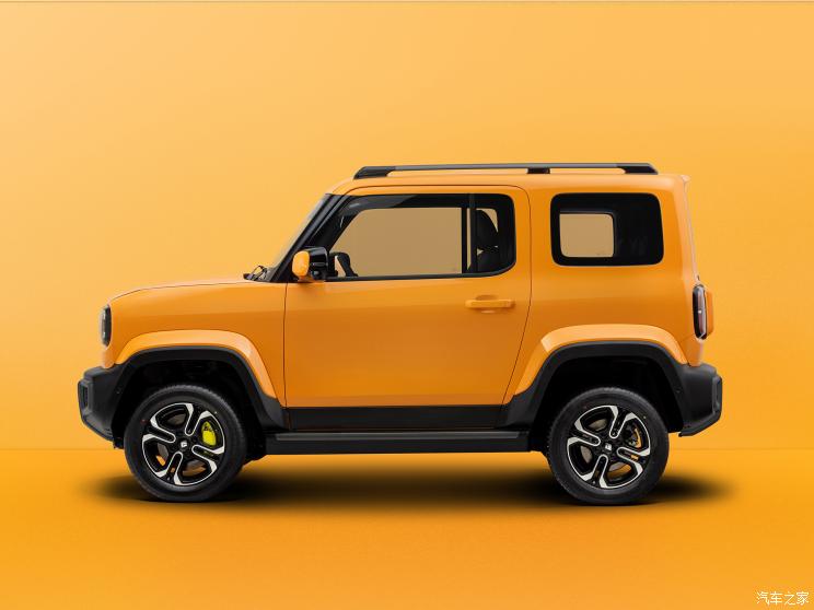 车身侧面来看,这款小型纯电动SUV采用了较为宽厚的轮眉设计,侧裙位置还配有宽厚的侧裙踏板,双门短小紧凑的车身结构,也让新车看上去更加灵活。车尾部分,新车采用了纵向布局的尾灯组,后备厢门为侧开式,后包围与前包围相呼应均采用了宽厚的越野风格,整体搭配非常协调。