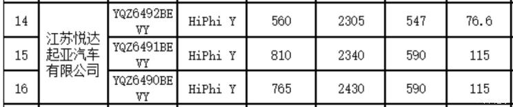 [本站 资讯]日前,工信部《免征车辆购置税的新能源汽车车型目录(第63批)》上刊登了高合HiPhi Y的车型信息,其中公示了新车的电池容量、整备质量和续航信息。