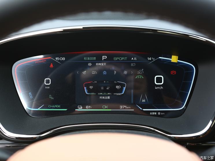 全液晶仪表盘,在传统的正前方车辆显示基础上,增加了左右两个车道的前后方车辆识别以及弯曲车道线的识别,支持最多六个目标的显示及包括行人、两轮车、小车、大货车四种目标类型的识别,成像为3D模型。同时,新车还配备抬头显示系统,拥有更大成像尺寸,更大亮度,更大成像视野。新车还配备了NFC数字钥匙(兼容苹果和安卓设备),可以通过比亚迪汽车App、蓝牙钥匙、手机NFC车钥匙进行操作。