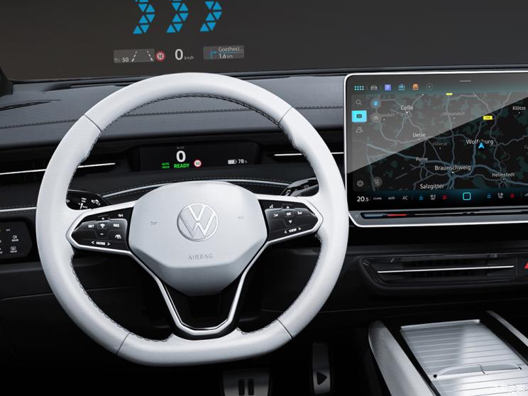 内饰方面,新车还将会延续大众ID.系列的家族式设计风格,中控屏尺寸将加大至15英寸,并内置最新HMI系统。仪表盘尺寸则会进一步减小,挡把依旧集成在转向柱上,在前风挡玻璃上则会继续配备AR-HUD显示功能。此外,新车在智能方面也将会有所升级,比如可以检测车外温度,当拿着车钥匙走近车辆时,可以提前开启空调系统预热或制冷。
