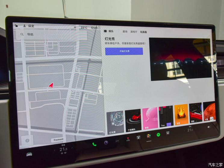 车辆内饰是此次重点升级,整个中控台面进行了全新的设计,传统的竖屏被全新的方形屏幕所取代,与Model Y等车型保持一致,可左右调节倾斜角度的高色彩保真度17英寸触摸屏,拥有每秒高达10万亿次浮点运算能力的处理器,满足在车内看大片、打游戏。全液晶仪表盘的样式也进行了优化,看上去更具科技感。