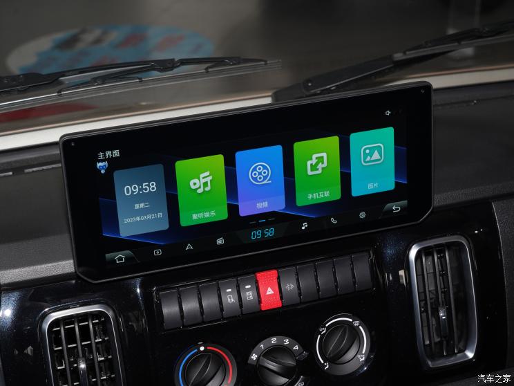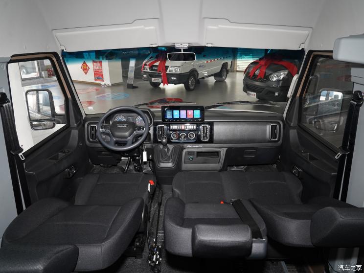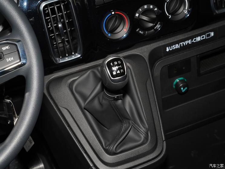 内饰方面,新车进行了全面的设计,整体更偏向乘用化风格,最引人注目的是,新车加入了悬浮式中控屏,尺寸不算小,具有导航、倒车影像、手机互联等功能。方向盘配备多功能控制按键,空调控制等物理旋钮仍保留下来,同时配备USB/TYPE-C接口等实用性功能。新车继续采用前排三个座椅的布局,后排乘坐空间巨大,也方便储物。