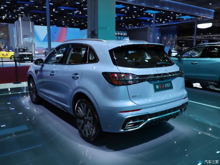 车身侧面来看,新车保持了HS5标准的SUV车身结构,前后侧翼子板微微突出车身,车身腰线从前翼子板处贯穿至车尾,配合车门下方内凹式的筋线设计,再搭配熏黑轮圈,让新车看上去动感十足。尾部方面,新车将采用熏黑式的贯穿尾灯组,后包围也采用了更加复杂的造型设计,双边共两出的排气布局也让新车更显运动氛围。