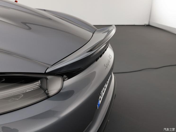 侧面来看,车门处的“Spyder RS”彰显身份,散热口采用碳纤维材质,车窗后方的进气口同样采用碳纤维材质及独特工艺优化气流,使其排气声浪更加迷人。此外,新车还配备20英寸锻造轮圈以及单螺栓结构,内部配备6活塞卡钳,轮胎则是Pilot Sport Cup 2 R系列。