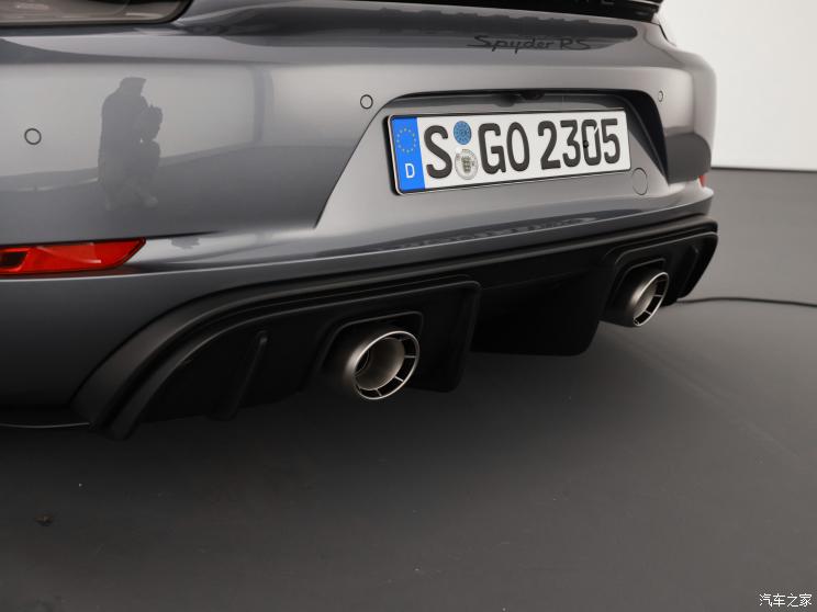 来到尾部,新车仅配备无边式鸭尾扰流板,并没有配备固定式大尺寸扰流板,这也是为了配合缩短后的前扰流板达到空气动力平衡,而大尺寸扩散器以及轻量化不锈钢运动型排气系统则没有缺席。此外,新车还配备轻量化软顶,整个车顶仅重18.3公斤,最终整车重量为1410公斤,比Cayman GT4 RS轻了49公斤。