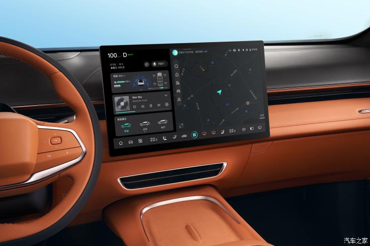 进入车内,整体氛围与深蓝SL03非常相似,并在细节处加以区分。可以看到,新车配备了一款尺寸宽大的中控屏,不过空调出风口并未采用贯穿式设计,而是分布在屏幕两侧及下方,中控台下方的布局也与深蓝SL03不同,视觉效果更加对称。