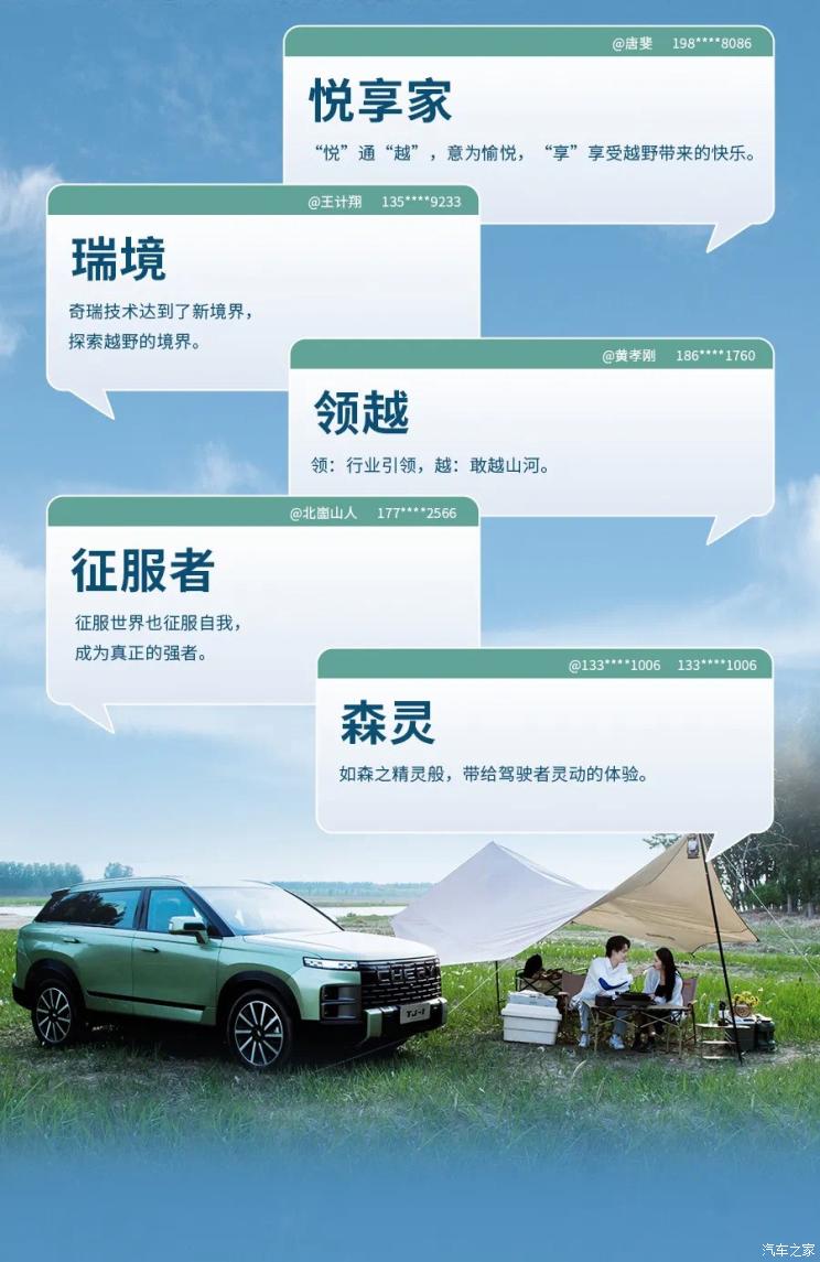 [本站 资讯]6月9日,奇瑞品牌发布了旗下TJ-1车型征名活动的十强名单。为期12天的征名活动从超7000个名称中筛选出10强,并将投票选出前3名进入决胜环节,最终将在6月16日定名官宣。在此前的2023上海车展上,奇瑞品牌旗下全新紧凑型SUV――奇瑞TJ-1 C-DM车型正式亮相,新车主打“轻越野,预计年内上市。