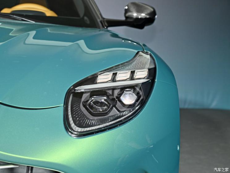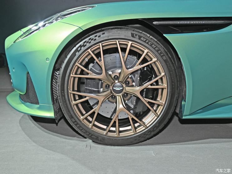 外观来看,新车前脸延续了阿斯顿・马丁的家族风格,招牌的鲶鱼嘴式大嘴格栅尺寸进一步扩大,在其下方拥有一体式扰流板优化空气动力学,并且它还是首款搭载新翼形LOGO的车型。全新造型的LED大灯支持6模块日间行车灯,并采用3D“金字塔”装饰。