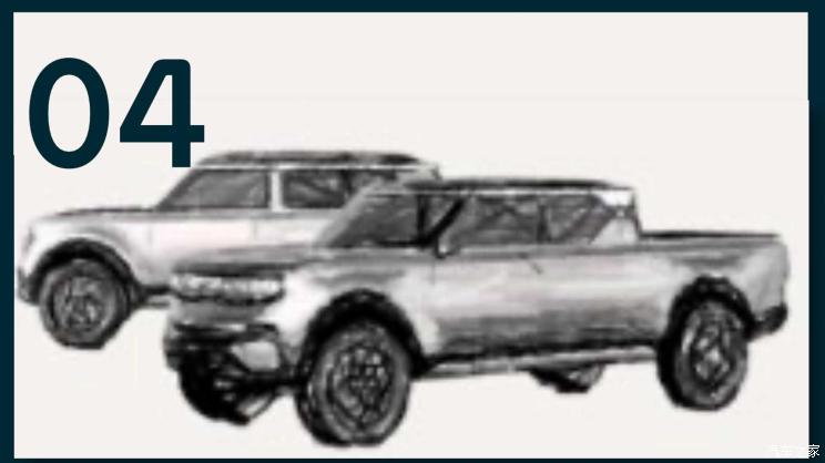 虽然画质并不清晰,不过我们还是可以看到一些比较独特的设计细节,比如,新车侧窗处似乎采用了不规则造型设计,同时,前脸部分有望会配备类似环形的灯带,此外,新车整体轮廓似乎长得有点像RIVIAN R1T,有着比较强的未来感。