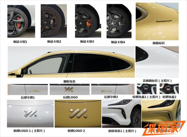 侧面,新车提供多款轮圈和卡钳颜色可选,花瓣状的低风阻轮圈很有科技感。尾部,新车拥有一个上翘的小鸭尾,灯组和整体造型也与LS7相似,看起来比较复杂。车身尺寸方面,新车的长/宽/高分别为4904/1988/1669mm,轴距2950mm,比LS7略小一些。