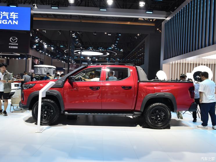 外观方面,新车在长安览拓者的基础之上升级了最大800mm的高位涉水喉、18英寸轮圈、全地形AT轮胎以及高性能越野悬架系统等等。升级之后新车的长宽高分别为5350/2006/1875mm,货箱尺寸长宽高分别为1600/1595/500mm。