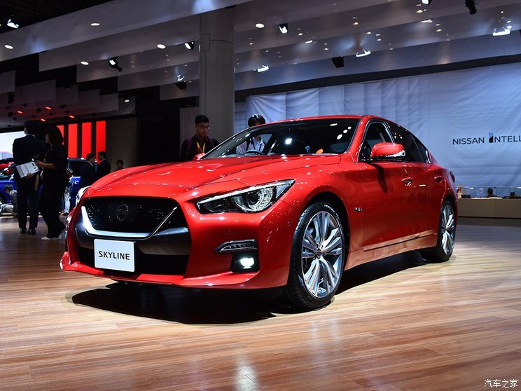 日产Skyline可以看做日本本土版的英菲尼迪Q50,前脸采用日产V-motion 1.0设计语言,大嘴式中网配合粗壮的V形饰条,看起来非常霸气。车尾部分,尾灯采用LED光环式设计,继续向历代Skyline车型的经典设计致敬,双出排气和红色扩散器设计进一步渲染出运动氛围。